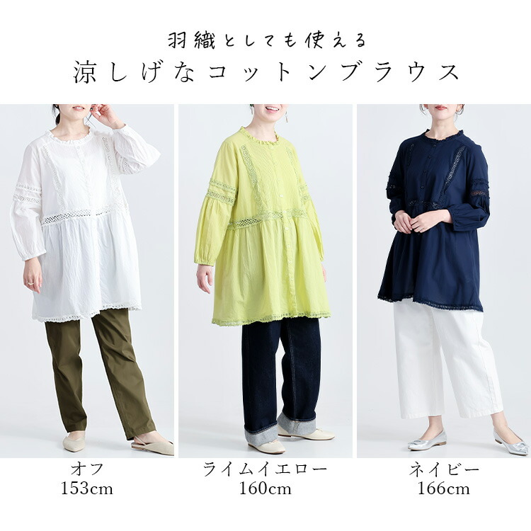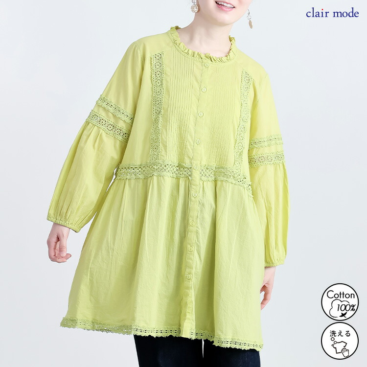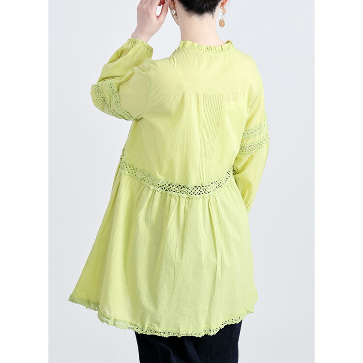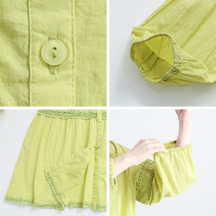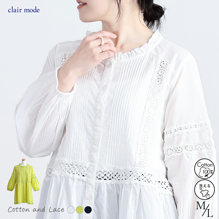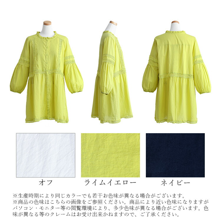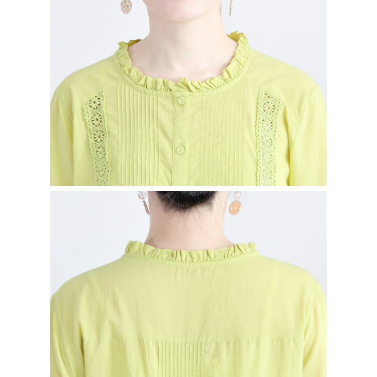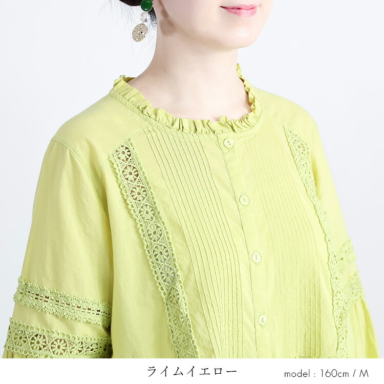 レース使いブラウス 3色 M L 洗え トップス シャツ ブラウス 超目玉商品 オフ ライムイエロー ネイビー M L