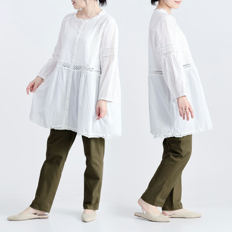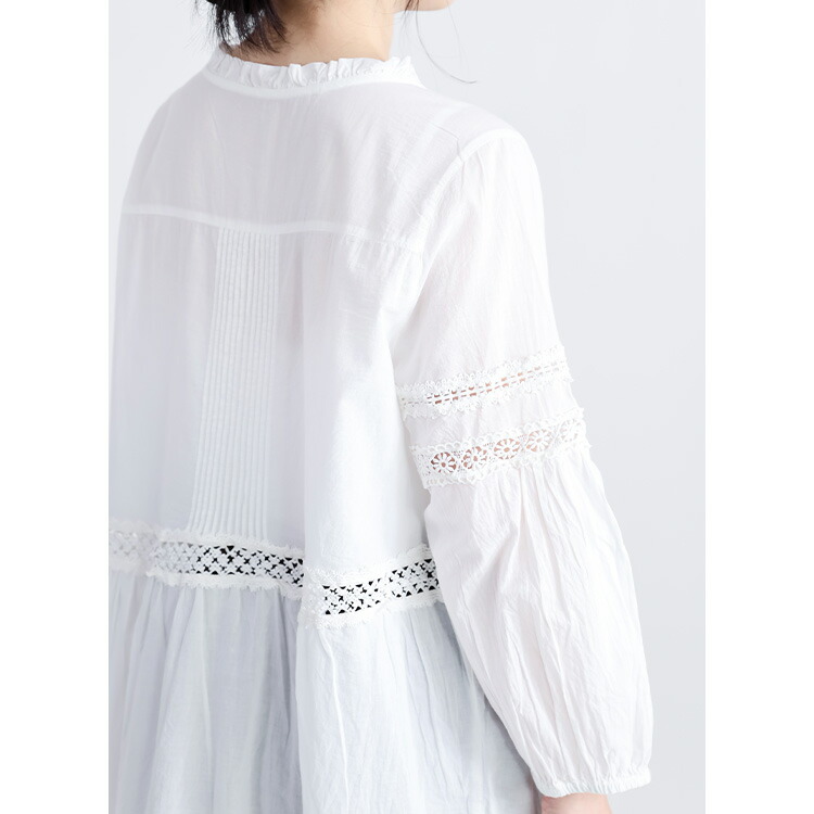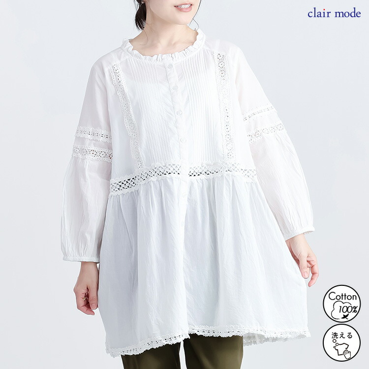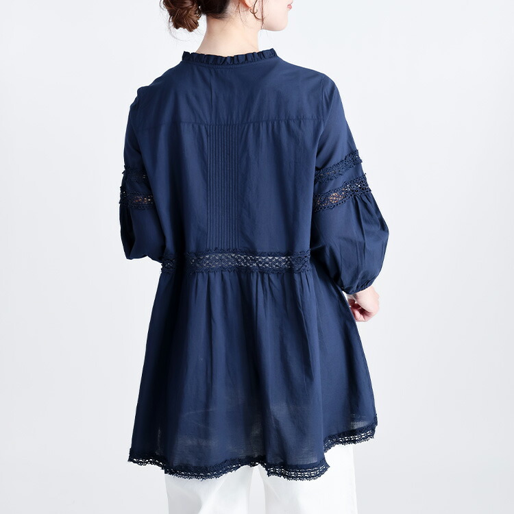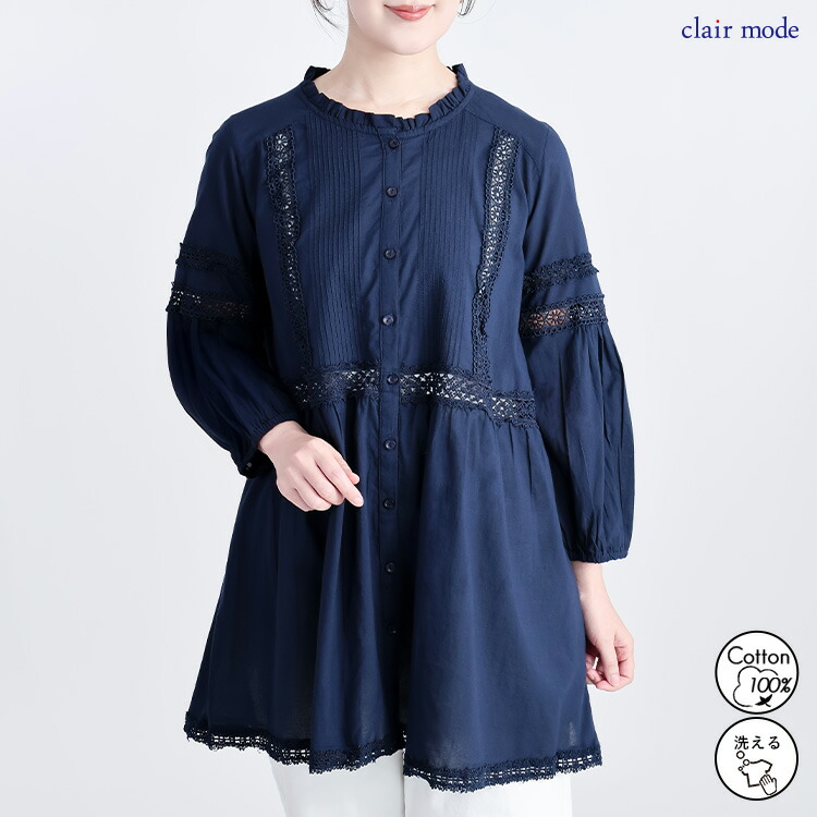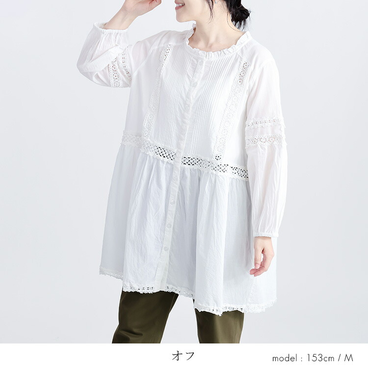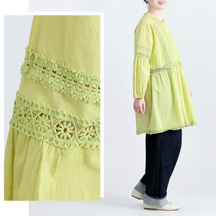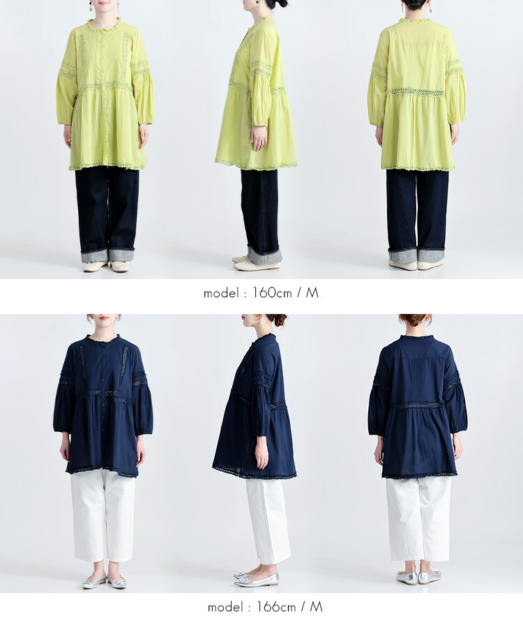 レース使いブラウス 3色 M L 洗え トップス シャツ ブラウス 超目玉商品 オフ ライムイエロー ネイビー M L