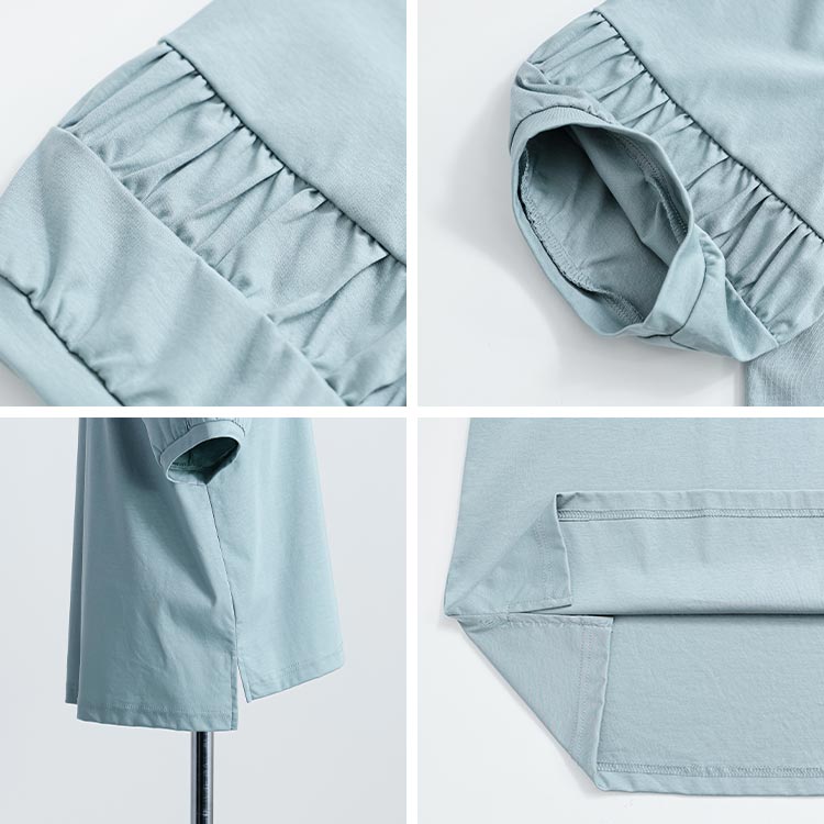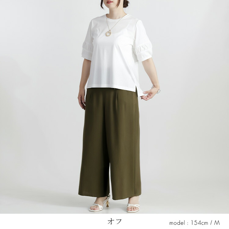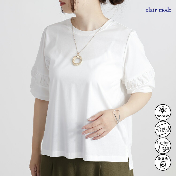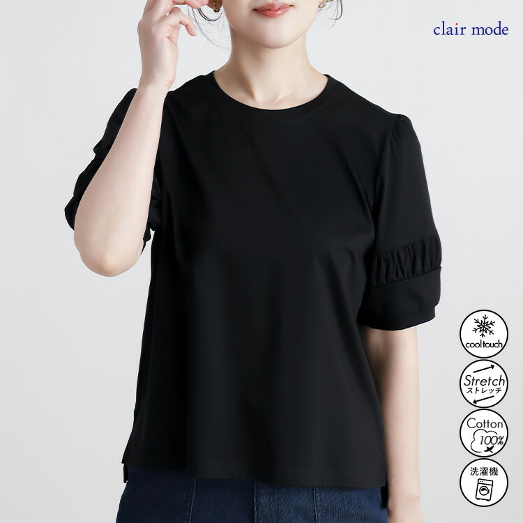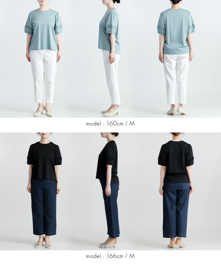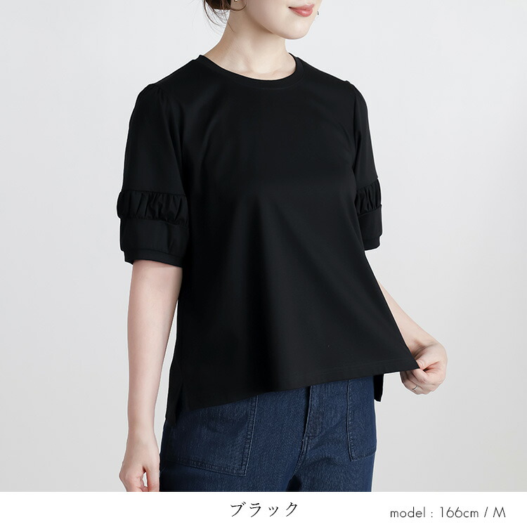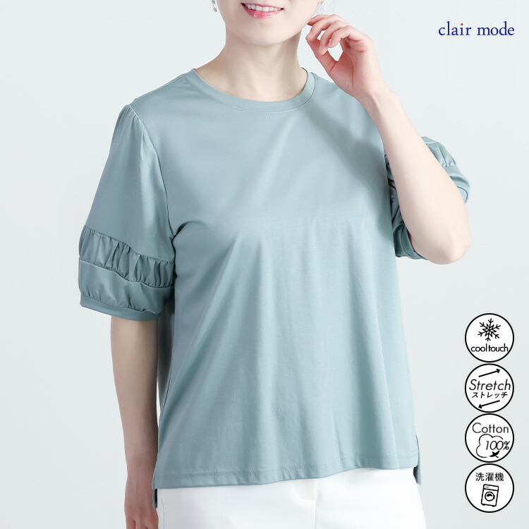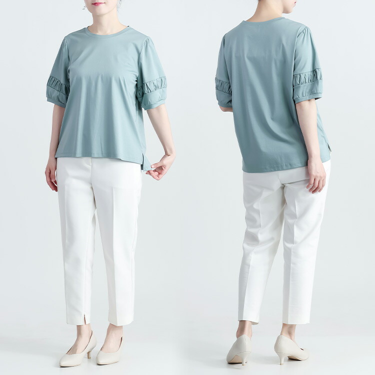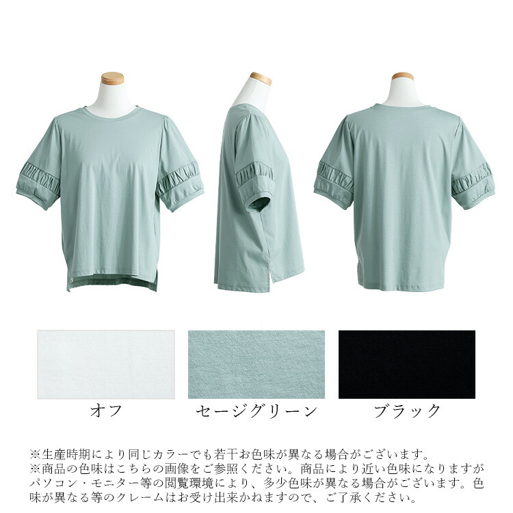 パフ袖シルケットスムースTシャツ 3色 レディースファッション 特集 オフ セージグリーン ブラック M L