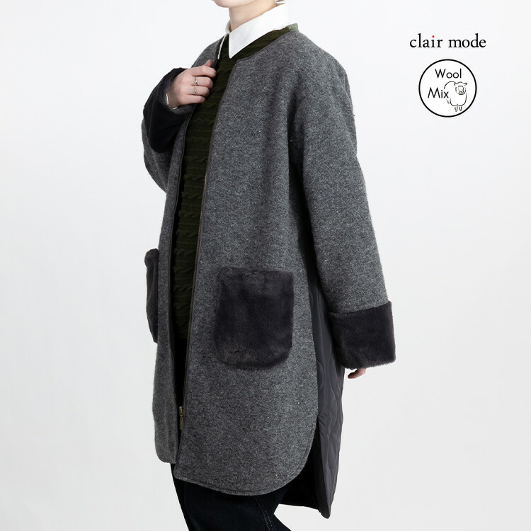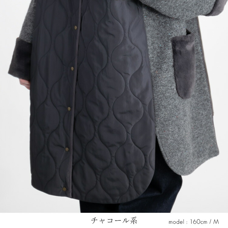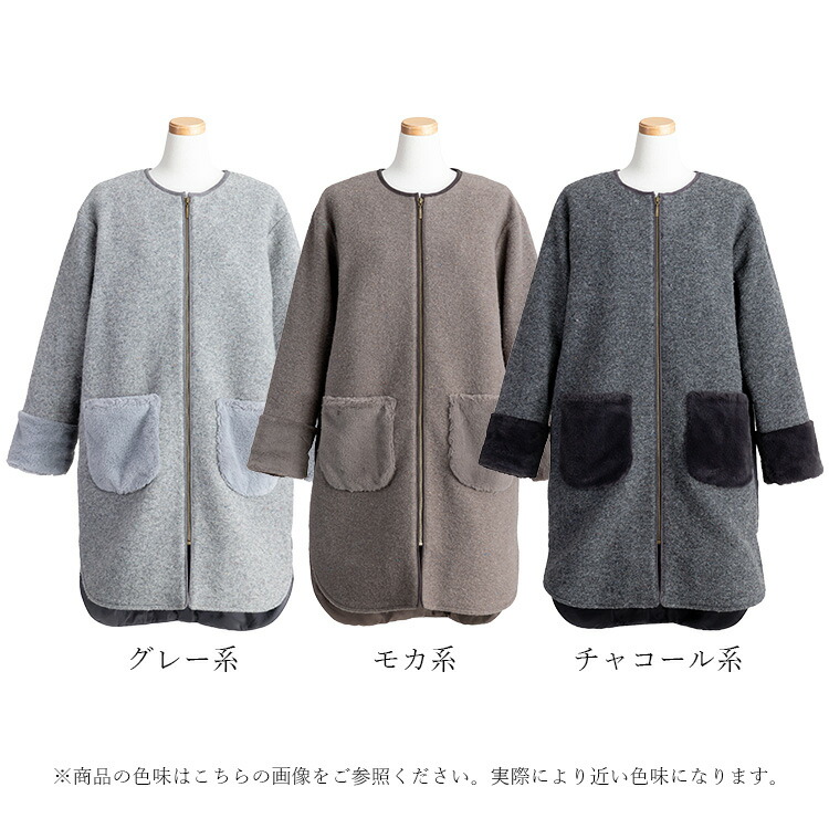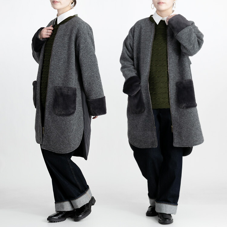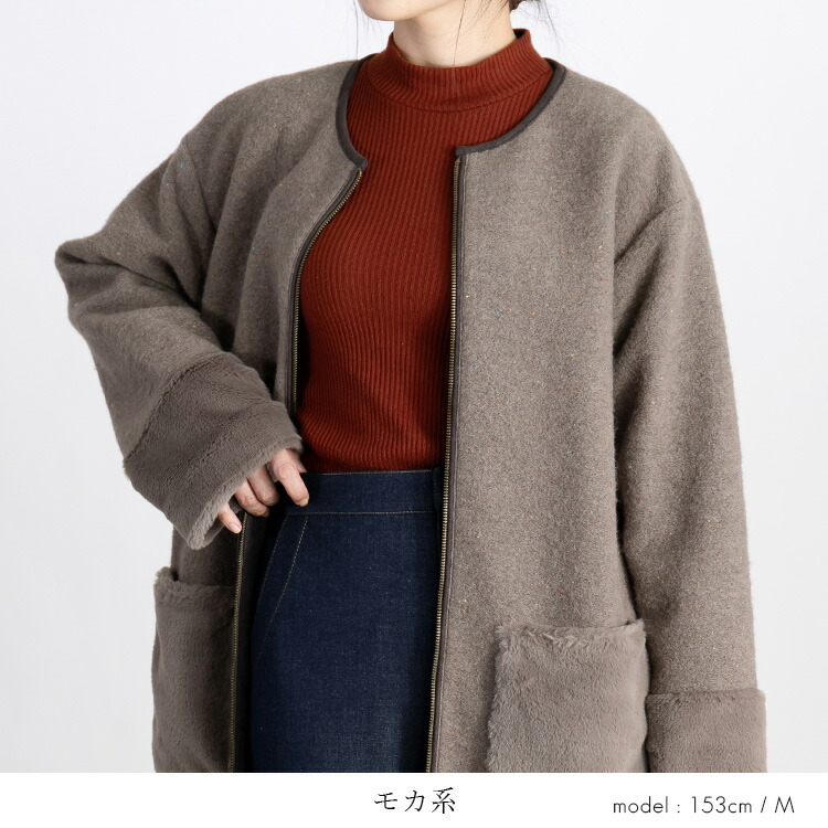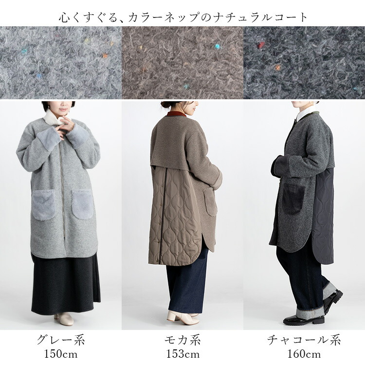 カラーネップ使いウール混コート 3色 レディースファッション 豊富 M L LL グレー系 モカ系 チャコール系