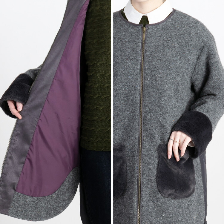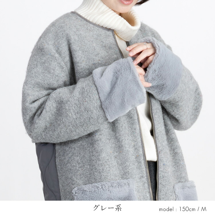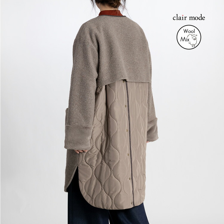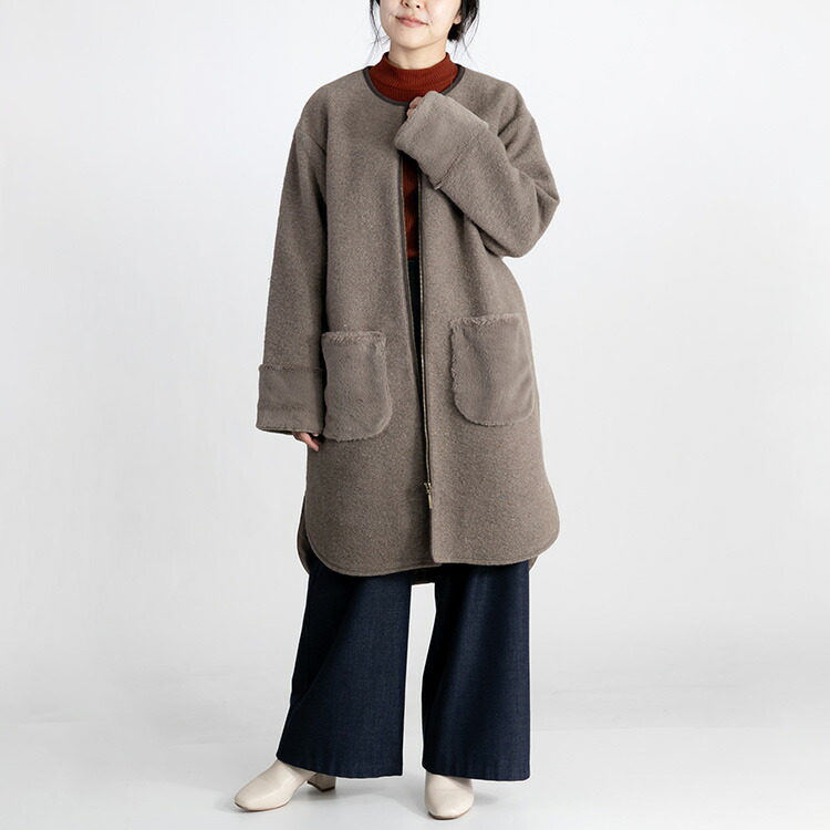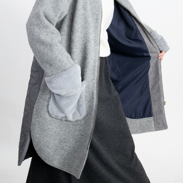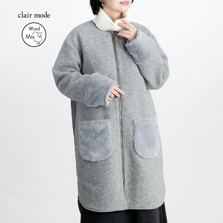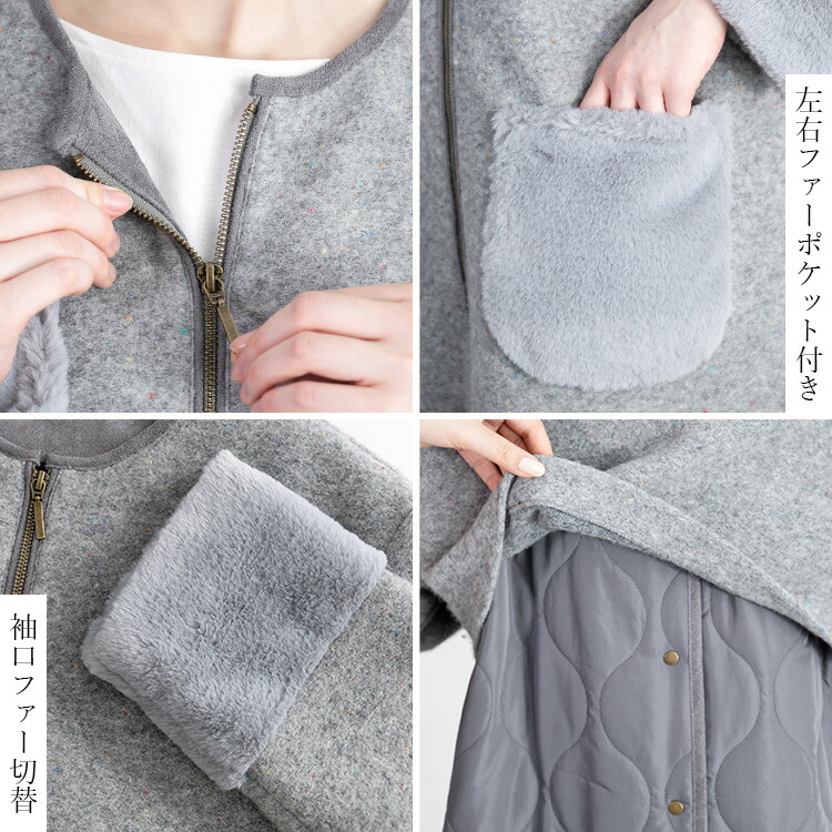カラーネップ使いウール混コート 3色 レディースファッション 豊富 M L LL グレー系 モカ系 チャコール系