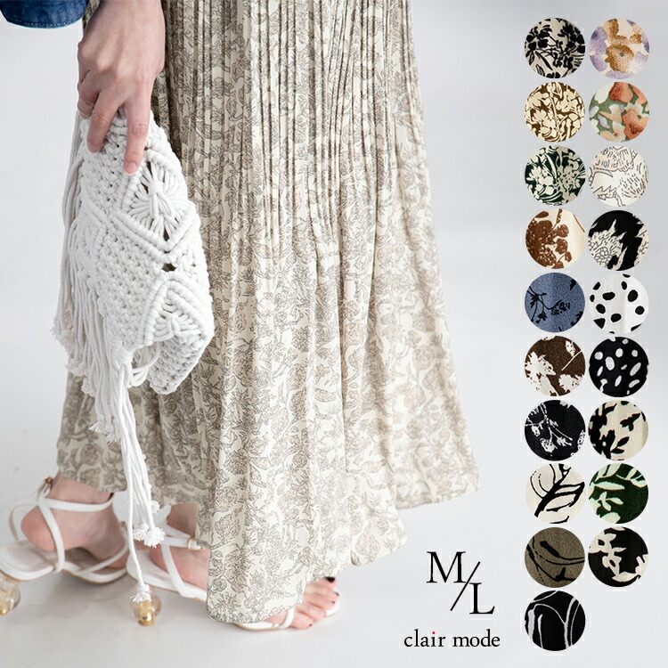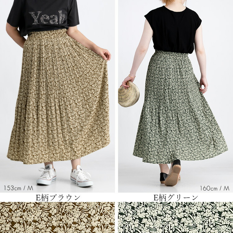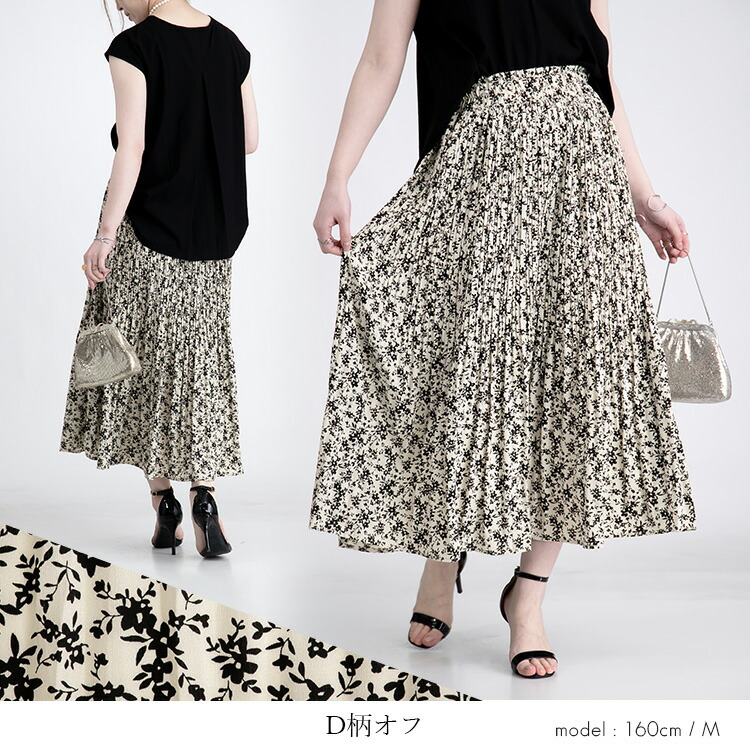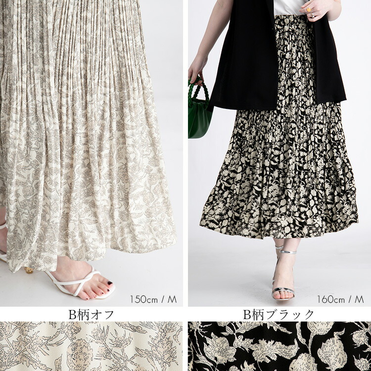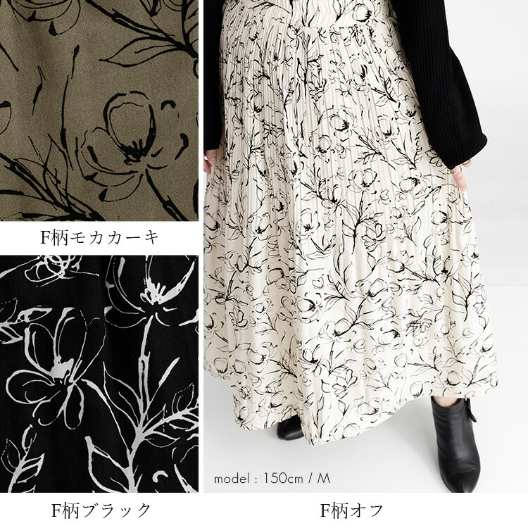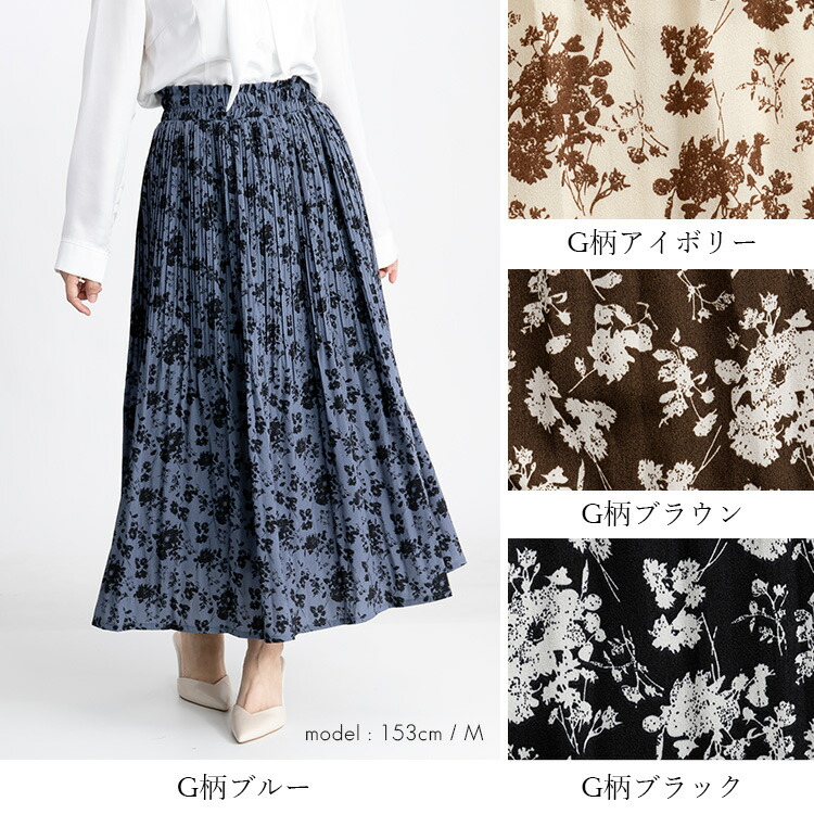 華やぎプリーツロングスカート 全7柄1 ボトムス スカート 特集 C柄オフ E柄ブラウン G柄アイボリー G柄ブラウン G柄ブラック M L
