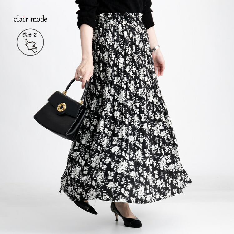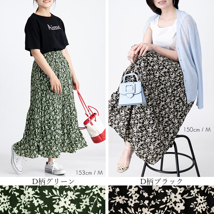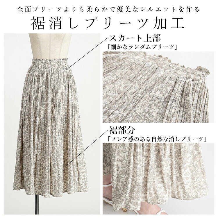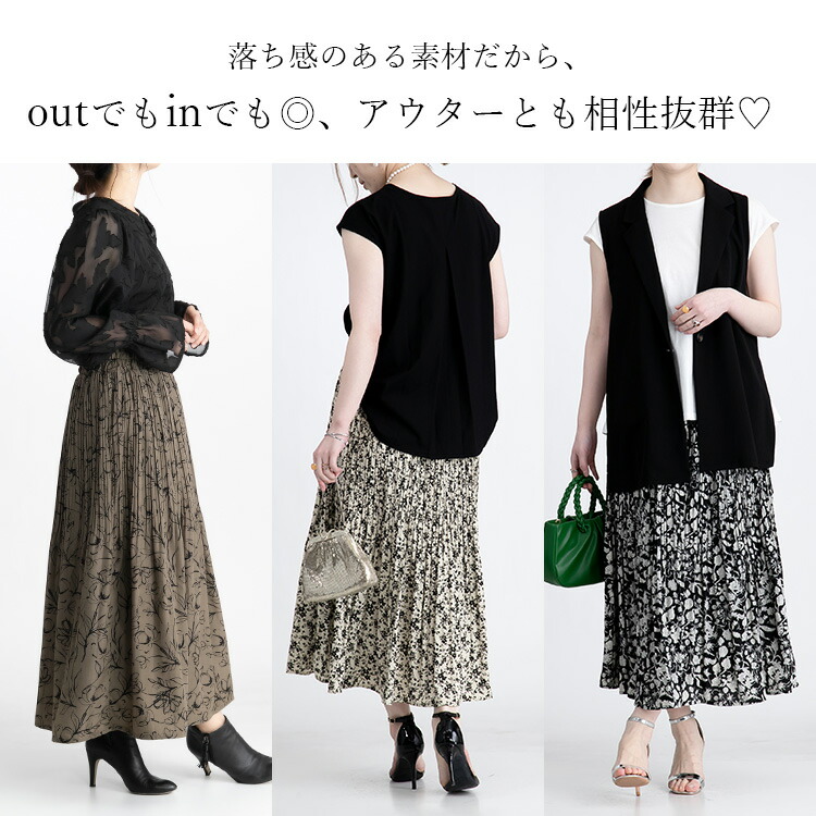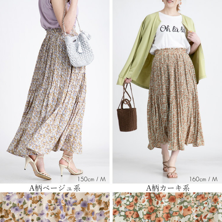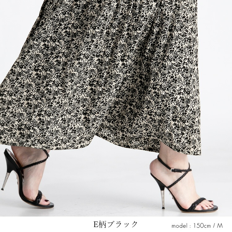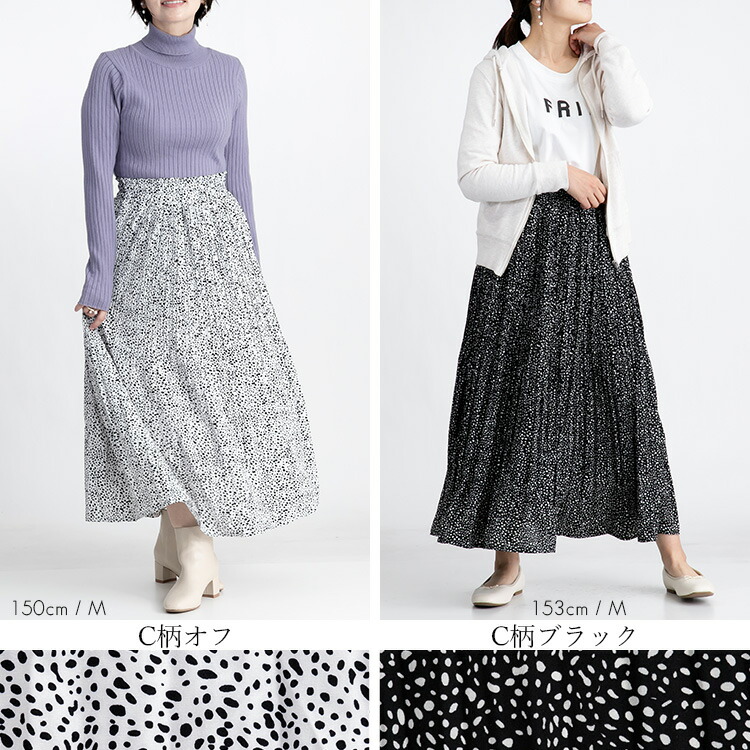 華やぎプリーツロングスカート 全7柄1 ボトムス スカート 特集 C柄オフ E柄ブラウン G柄アイボリー G柄ブラウン G柄ブラック M L
