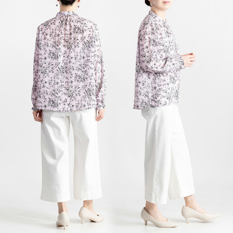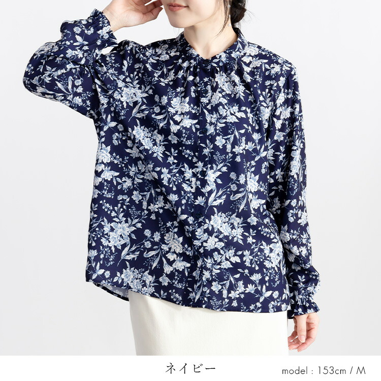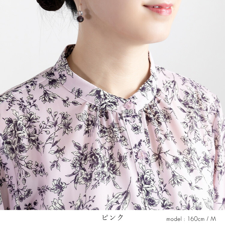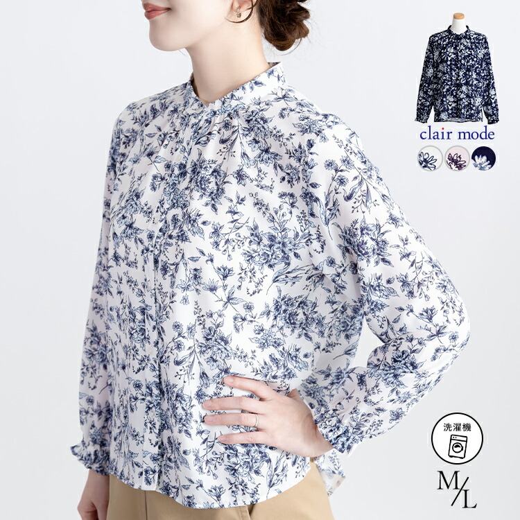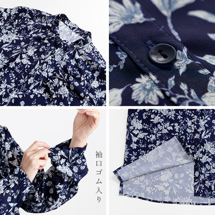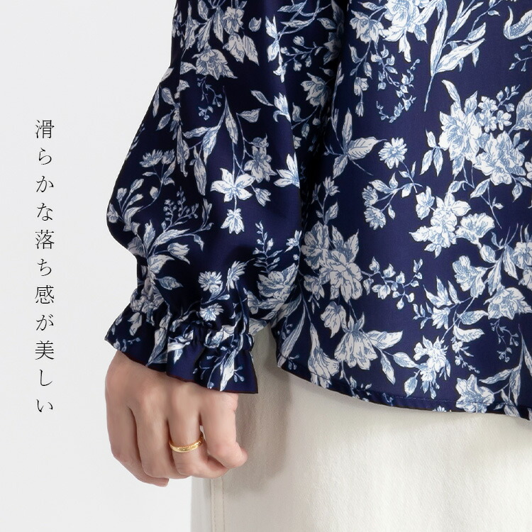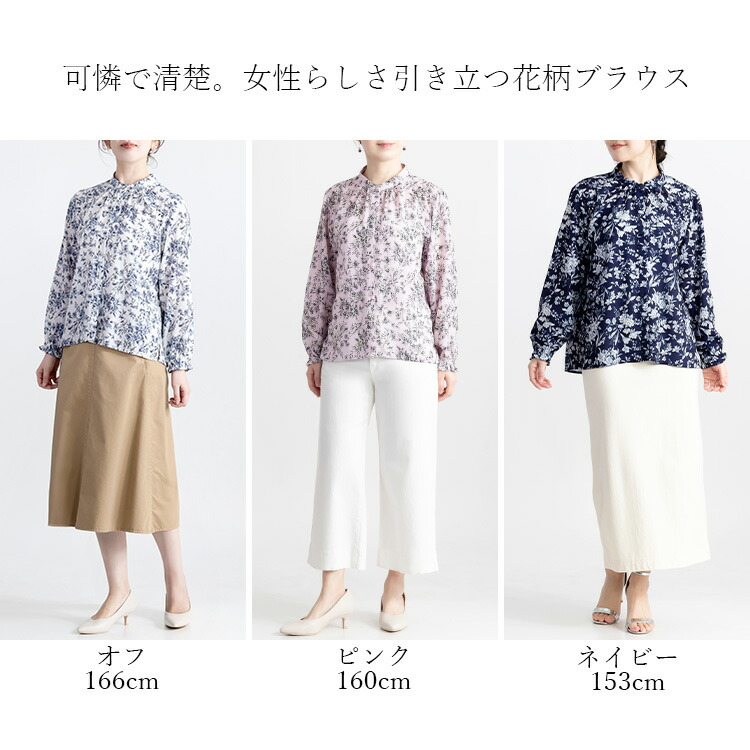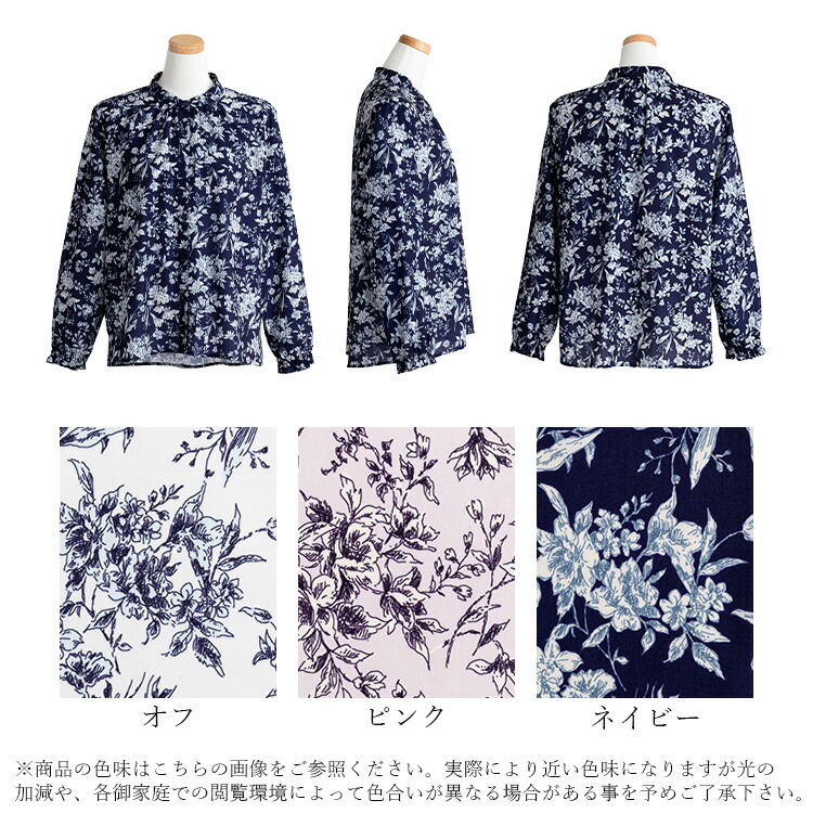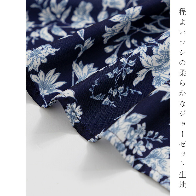 花柄ジョーゼットブラウス 3色 M L トップス シャツ ブラウス 超目玉商品 オフ ピンク ネイビー M L