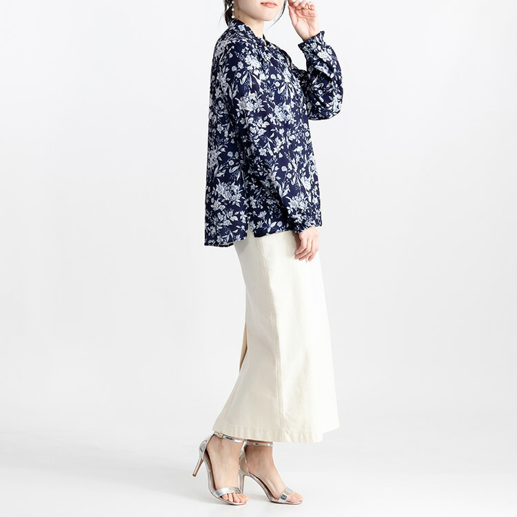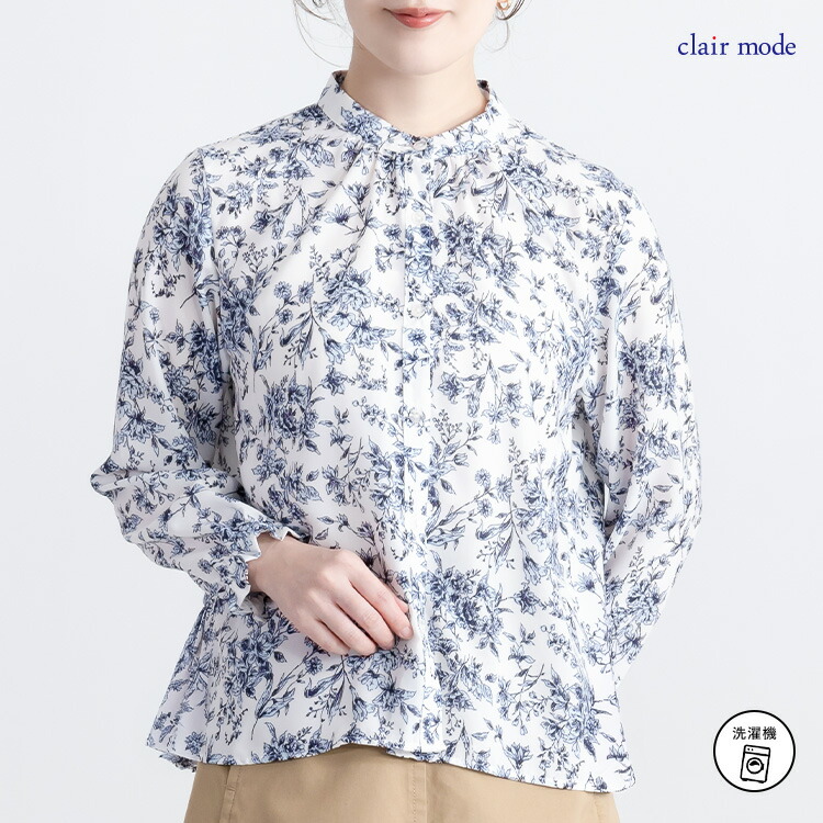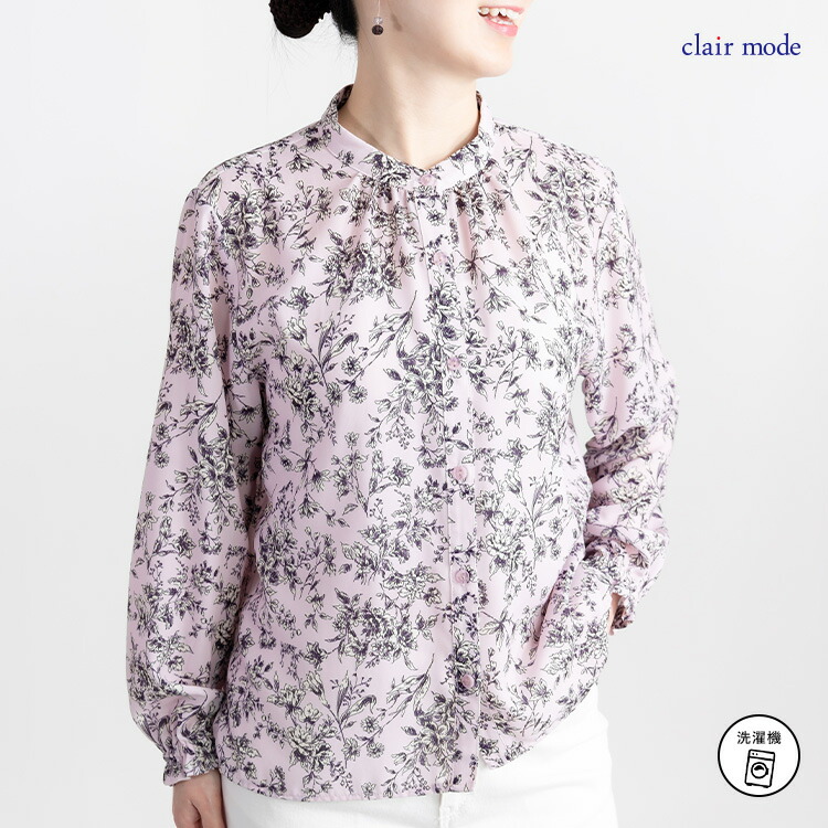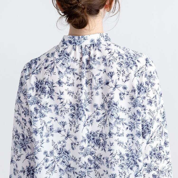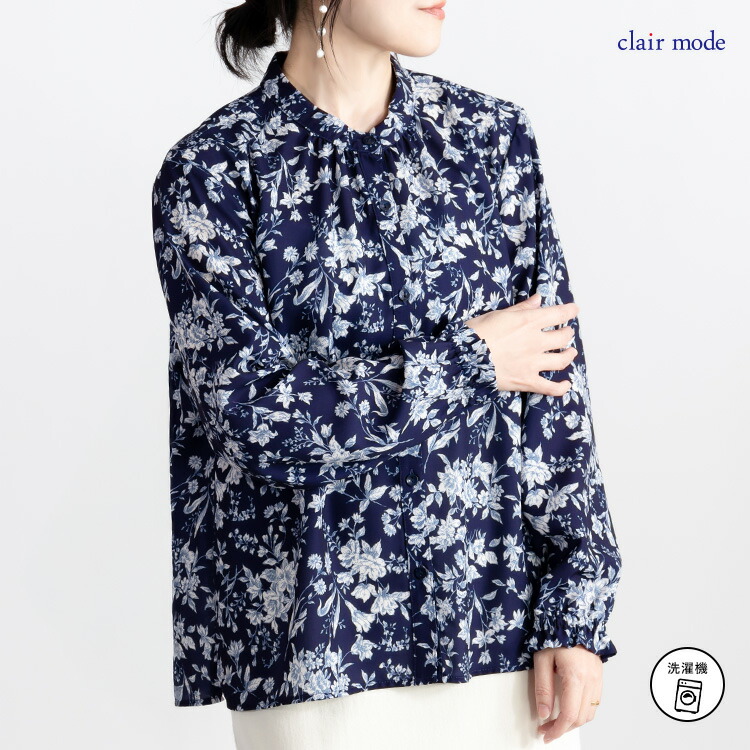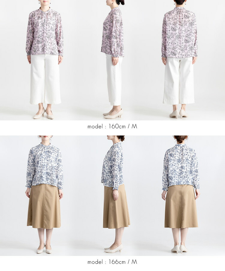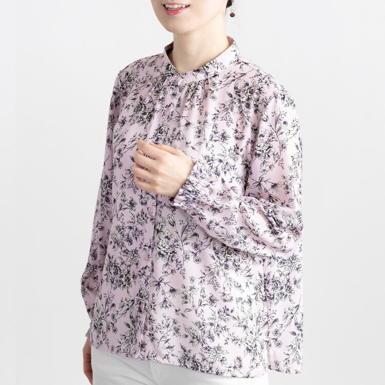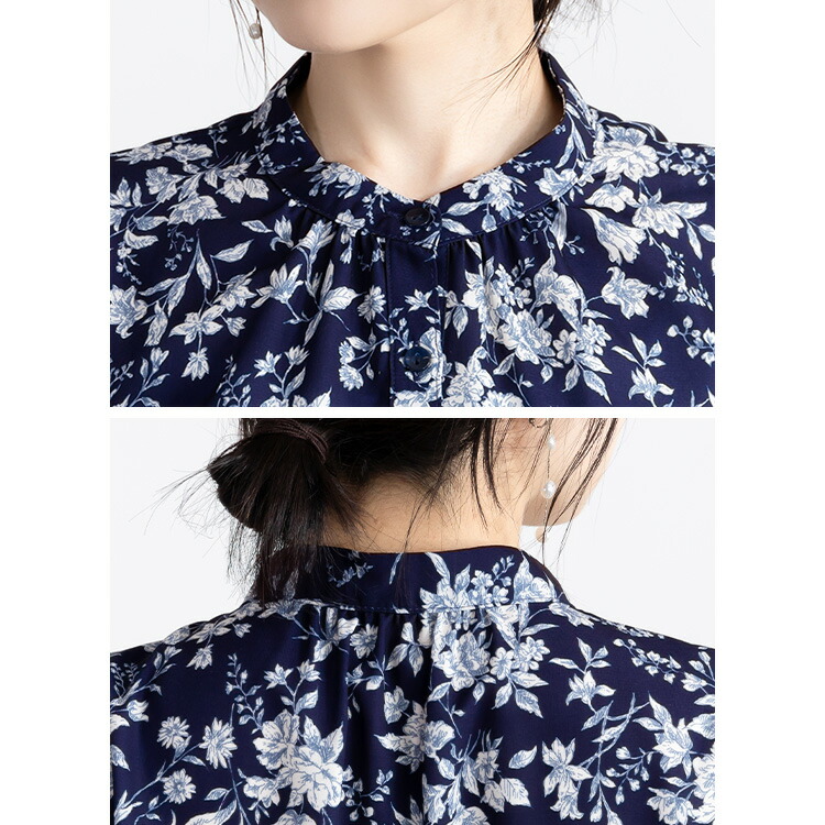 花柄ジョーゼットブラウス 3色 M L トップス シャツ ブラウス 超目玉商品 オフ ピンク ネイビー M L