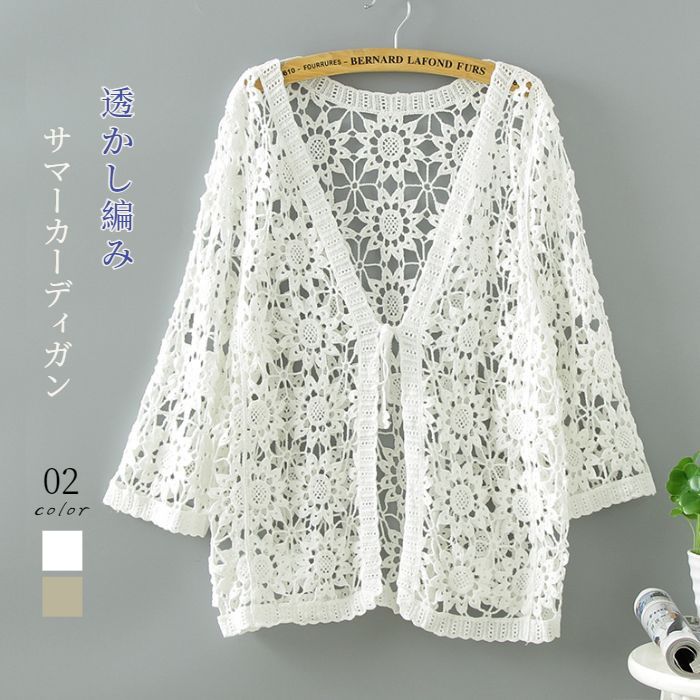カーディガン 透かし編み レース レデ レディースファッション 早い者勝ち ホワイト ベージュ