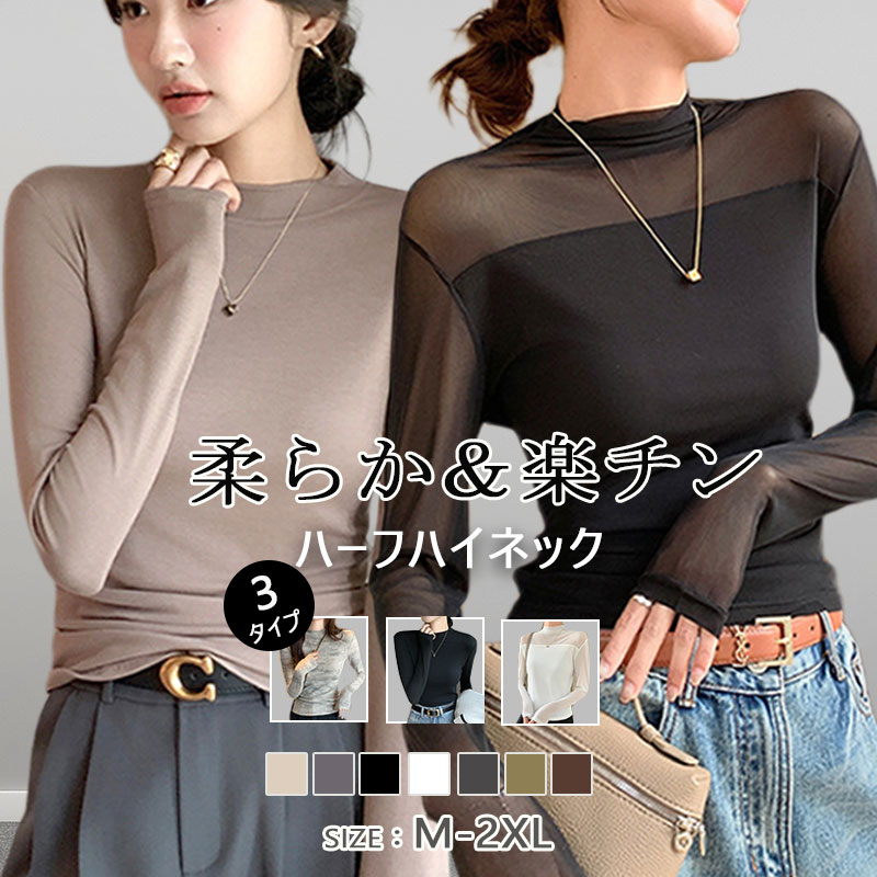 「柔らか&楽チン!」着心地良い ハイネック 長袖 無地 ニット インナー シアー 透け シンプル プルオーバー 柔らかく